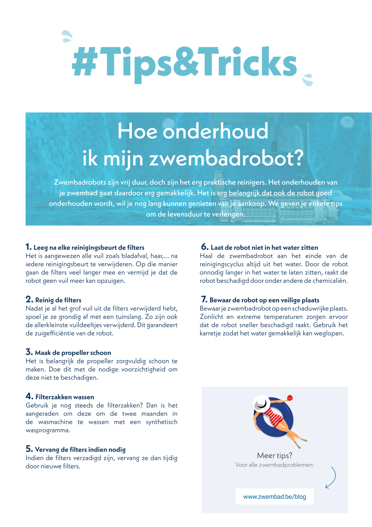 Zwembadrobots vragen een grote investering, doch zijn het erg praktische reinigers. Het onderhouden van je zwembad gaat daardoor erg gemakkelijk. Het is belangrijk dat ook de robot goed onderhouden wordt, wil je nog lang kunnen genieten van je aankoop. We geven je enkele tips om de levensduur te verlengen.