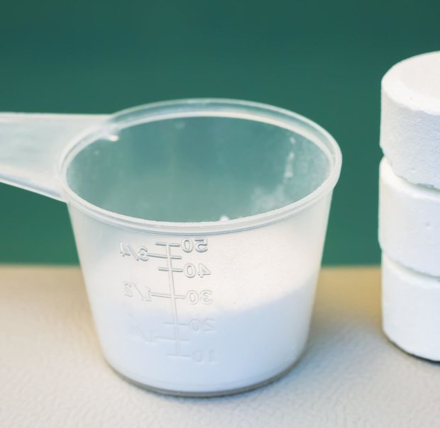 Dit doe je het best door chloorgranulaat te gebruiken. Hierdoor zal het chloorgehalte sneller gecorrigeerd worden dan met chloortabletten die traag oplossend zijn.