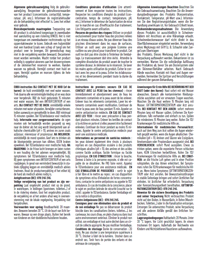 Niet mengen met enig ander product. Nooit oplossen voor gebruik.