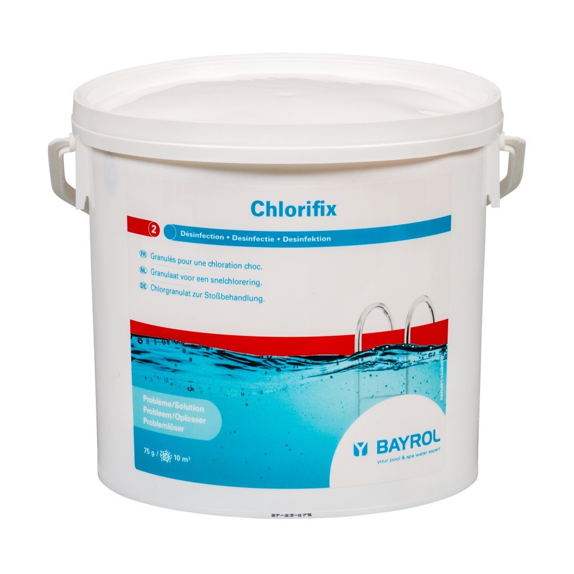 Bayrol Chlorifix helpt om het water snel te ontsmetten, zorgt voor helder water en voorkomt de groei van algen en bacteriën.