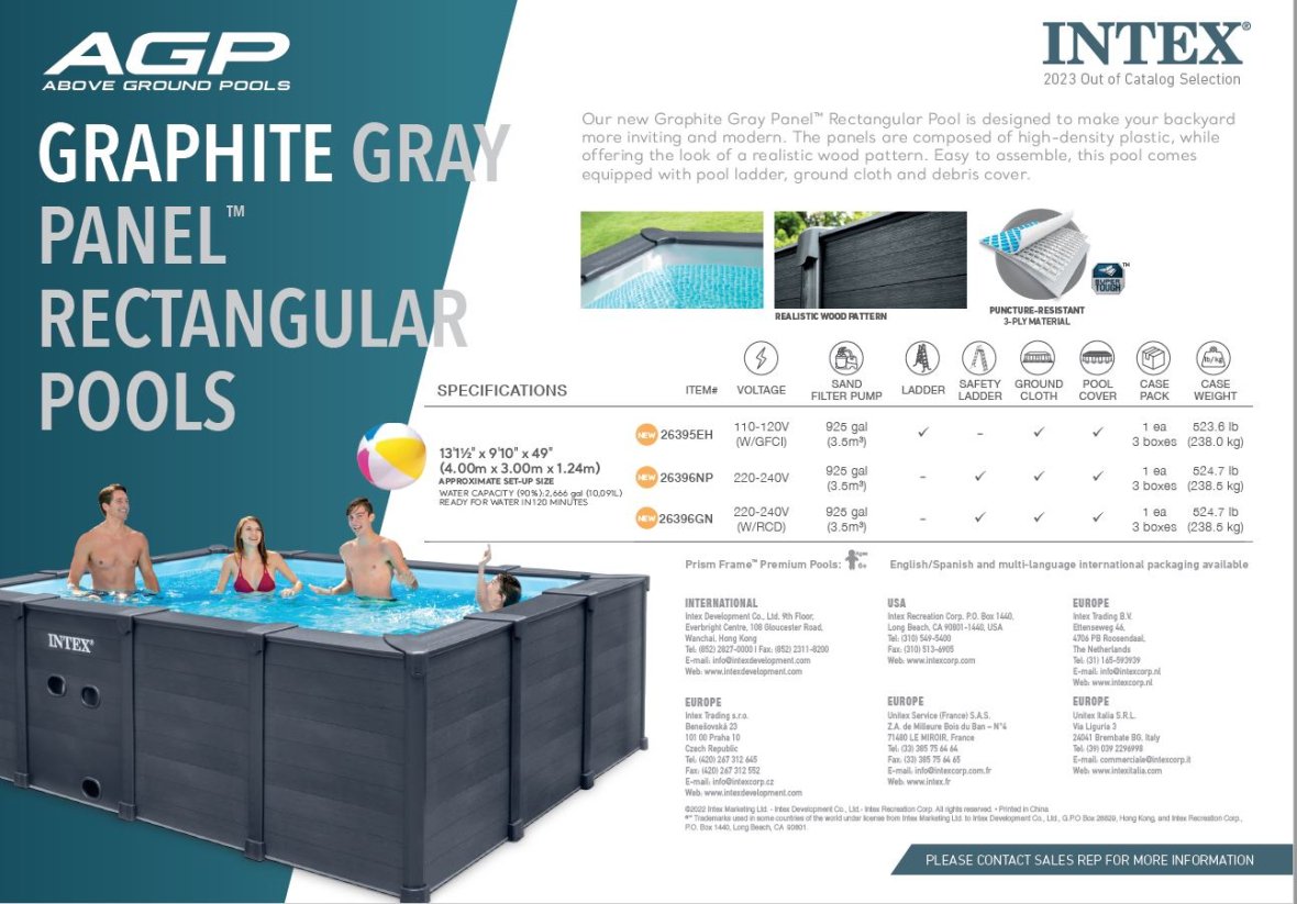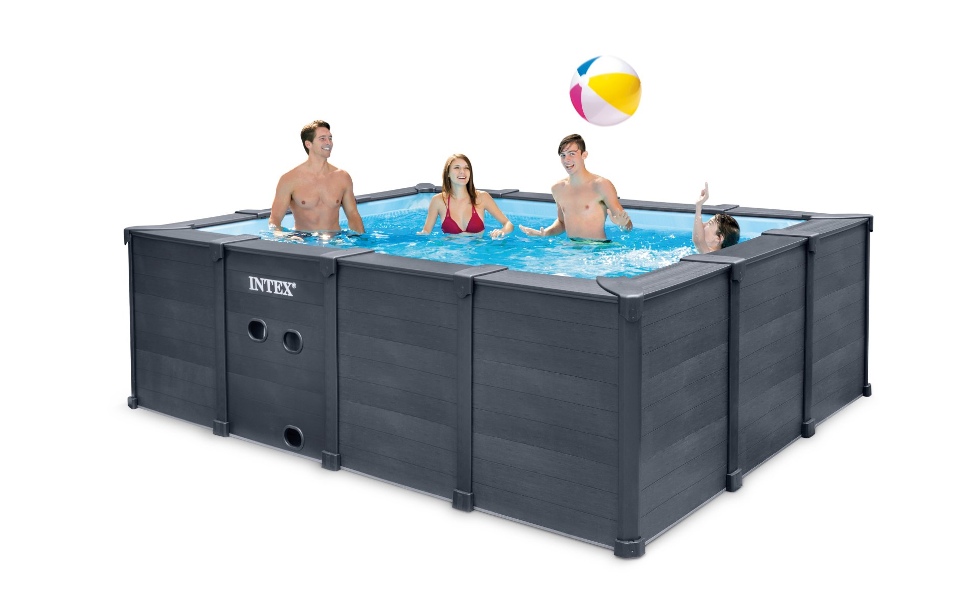 Stijlvol Design: Het Intex Graphite Grey Panel Zwembad is voorzien van stijlvolle, grafietgrijze panelen die een eigentijdse en luxe uitstraling geven aan je buitenruimte. Het strakke design past perfect bij moderne tuinomgevingen en voegt een vleugje elegantie toe aan elke setting.
