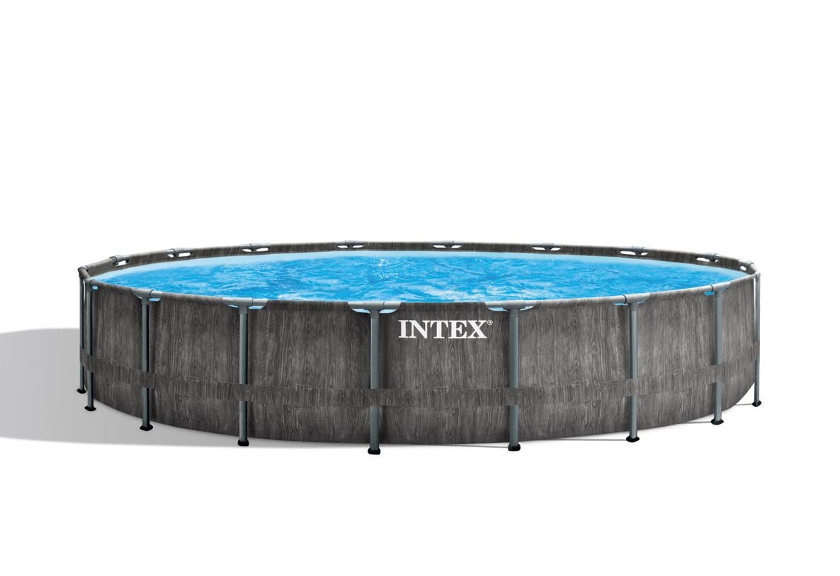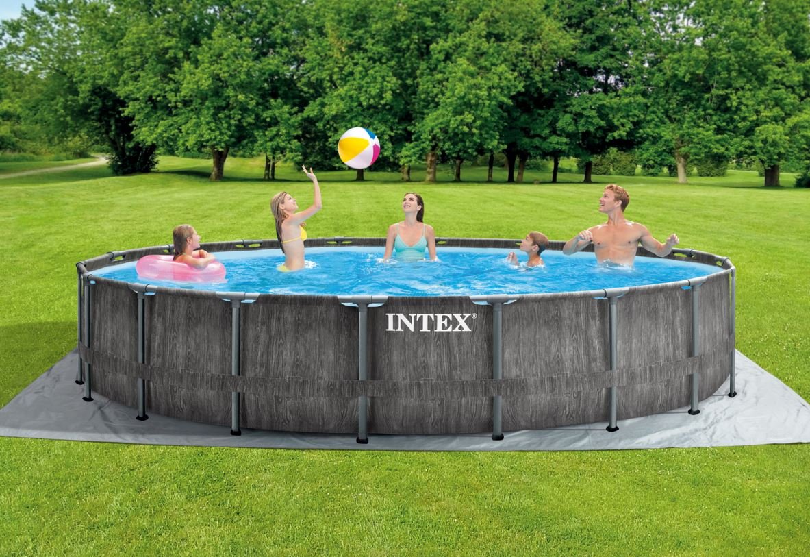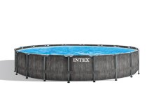 Stijlvol Design: Het Intex Prism Frame Zwembad in Greywood design voegt een vleugje elegantie toe aan je buitenruimte. Met zijn realistische houtnerfpatroon en grijze tinten creëert dit zwembad een eigentijdse en verfijnde uitstraling, perfect voor moderne buitenomgevingen.
