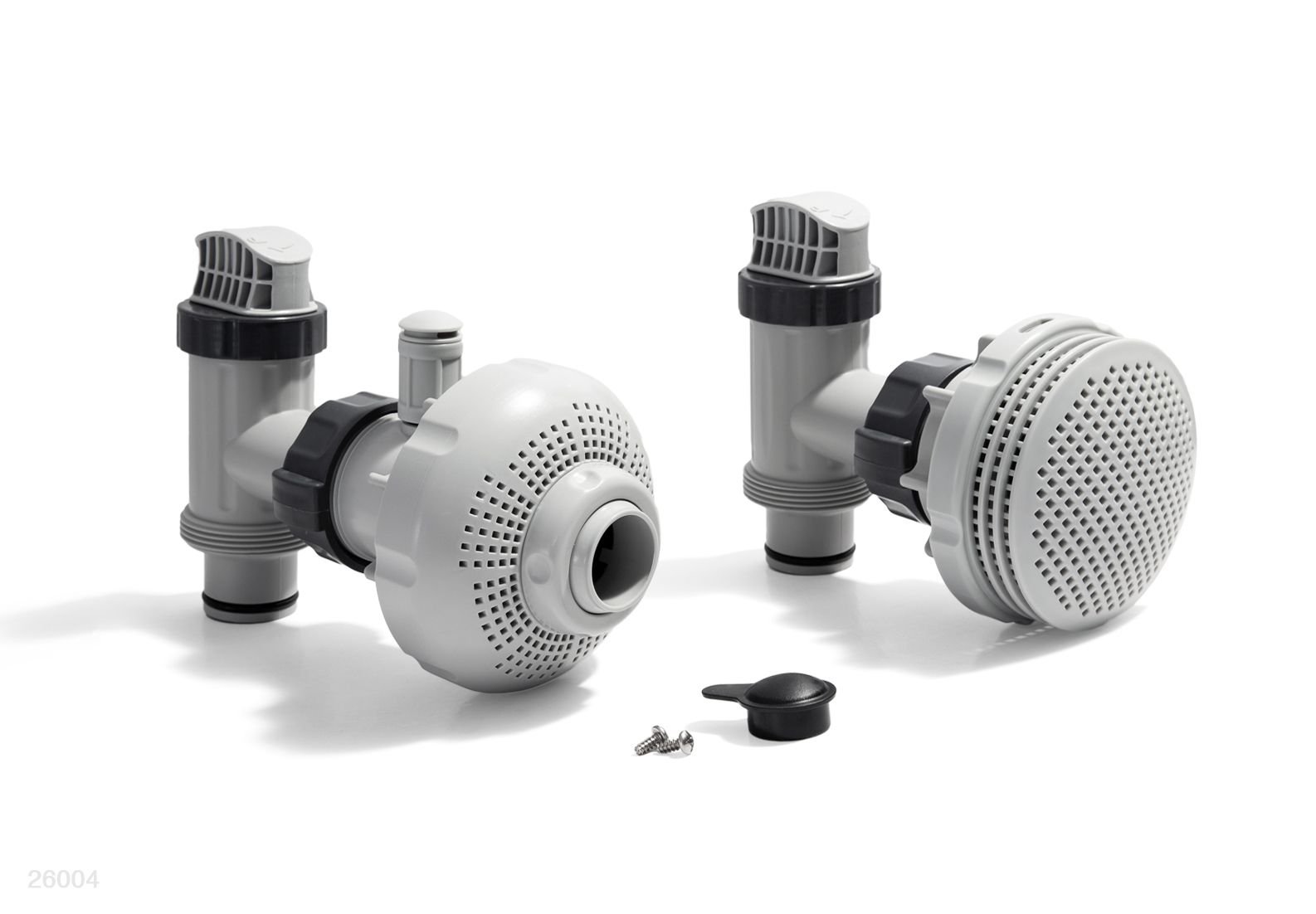 Deze set afsluiters en aansluitingen voor zwembaden met een diameter van 38 mm is ideaal voor filterpompen met een maximaal debiet van 7m³.