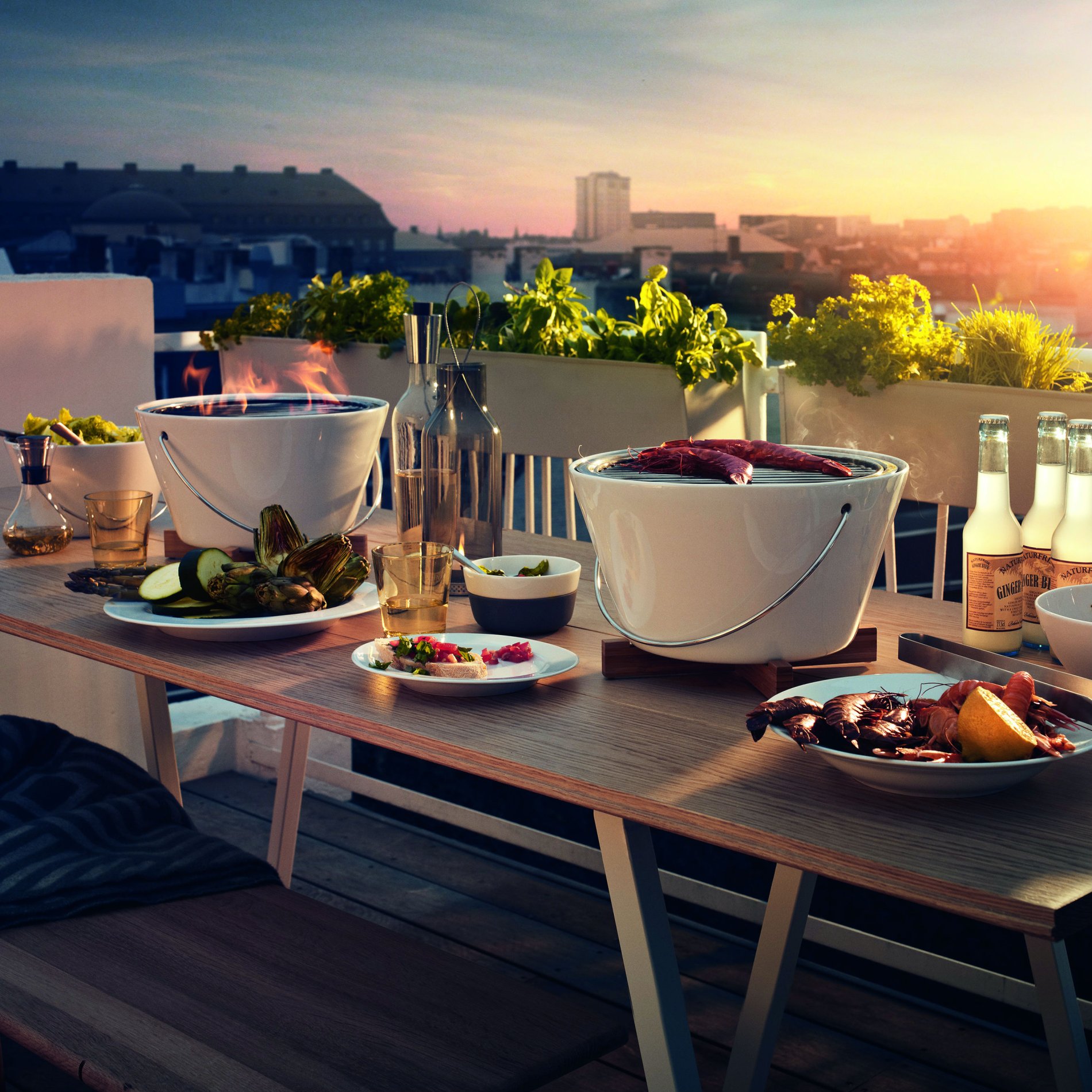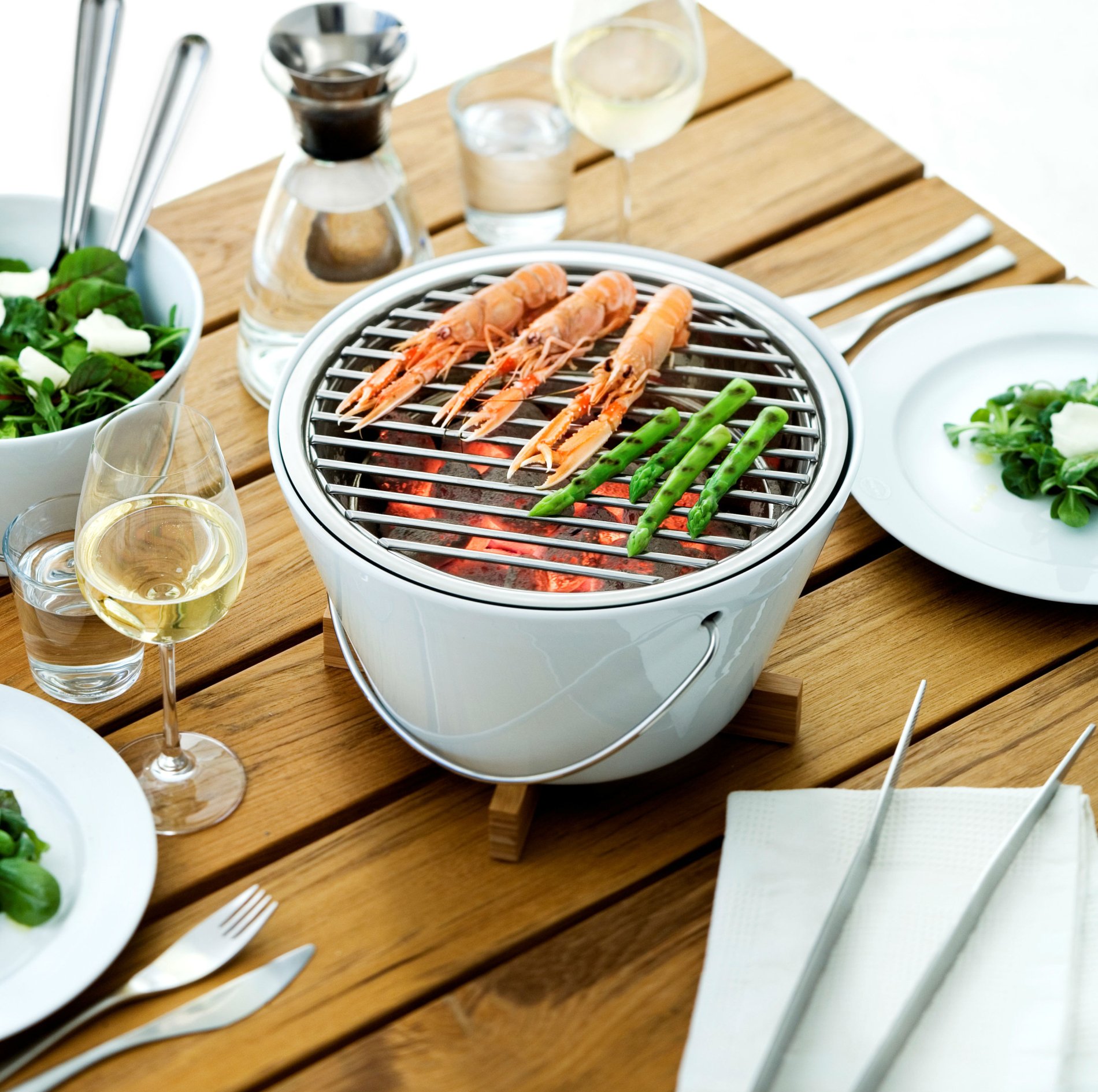 Met tafelgrill barbecue van Eva Solo kan je heerlijk barbecueën met vrienden. Door zijn kleine omvang kan je hem gewoon op tafel plaatsen.